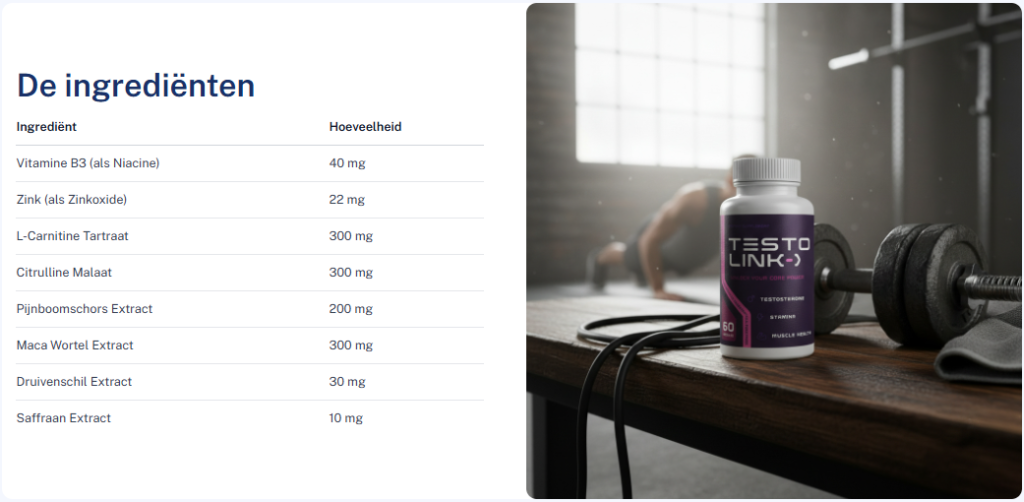 Neem twee capsules van TestoLink per dag. TestoLink is speciaal ontworpen om uw mannelijke lichaam te ondersteunen. De gecombineerde inname van de ingrediënten is extreem populair.